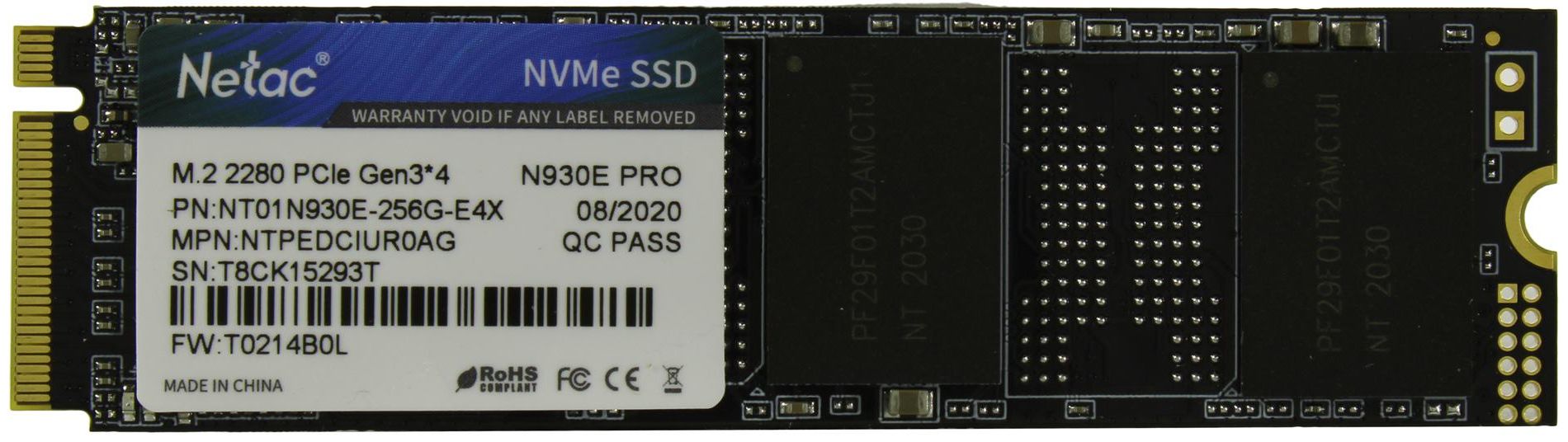 Жесткий диск SSD M.2 256Gb Netac 2280 NVMe 1.3 N930E Pro Series Retail (PCI-E 3.1 x4, up to 2040/1270MBs, 3D TLC/QLC)